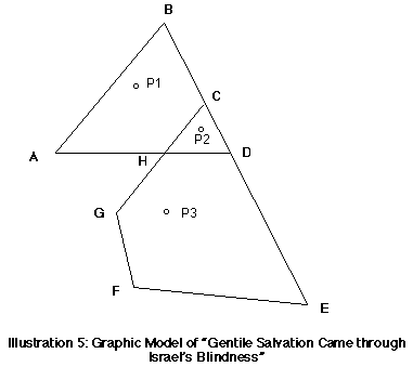 A second case, involving conjunction by subordination is in 11:11-24, the section on the Olive Tree and the Branches. Here Paul is discussing two themes of Old Testament prophecy: Israel's blindness and Gentile salvation. Both concepts were clear in the Old Testament, but what was not clear was the eschatological relationship between the two. Paul, standing later in the history of redemption, can see the relationship between the themes. Indeed, the statement in verse 11 "But by their transgression salvation has